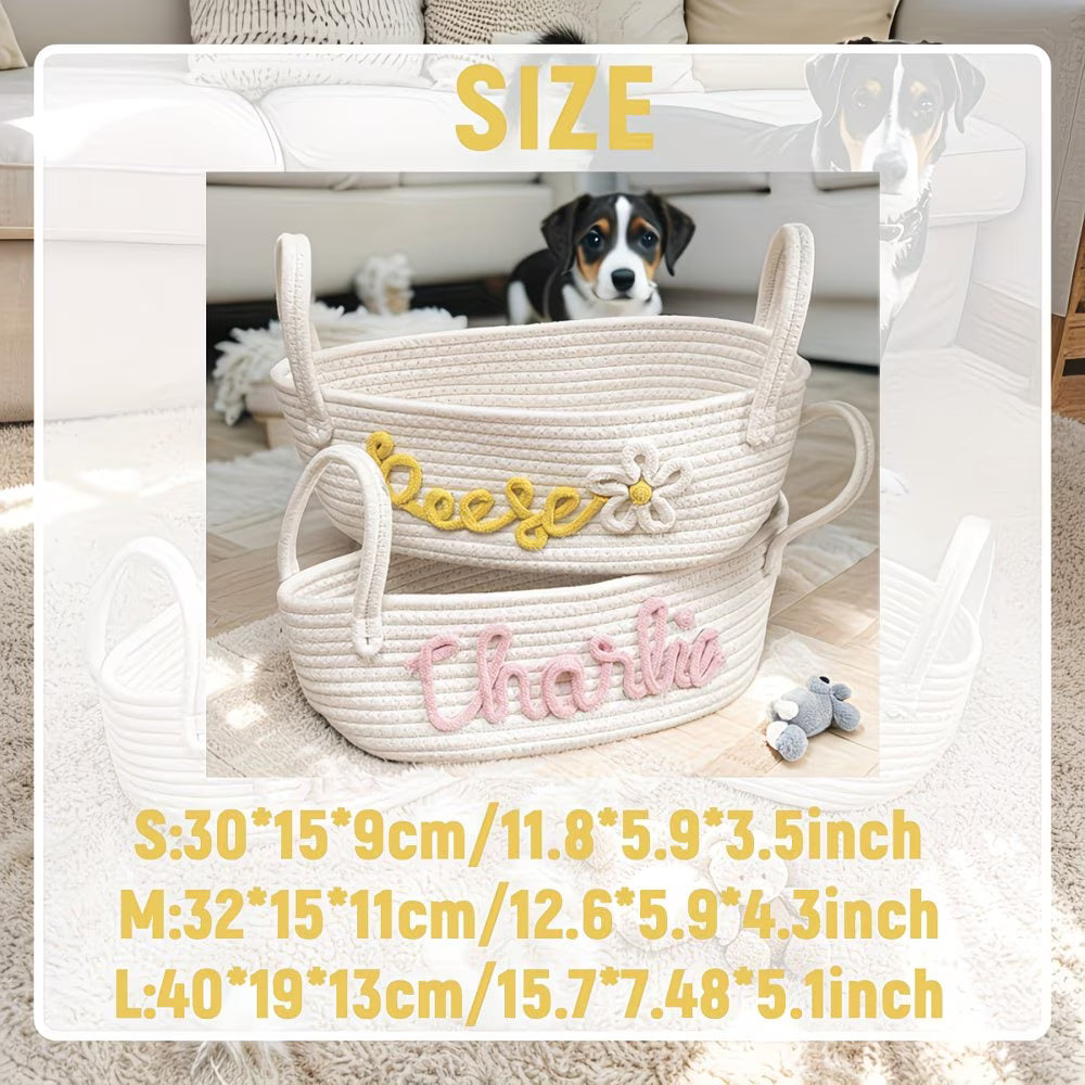Every pet deserves a space that's theirs. Hand-embroidered with their name, this cotton rope basket turns everyday clutter — toys, treats, leads — into something you'll actually want on display.